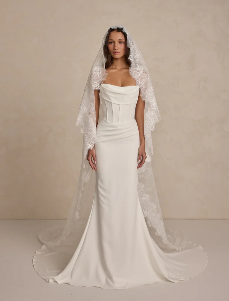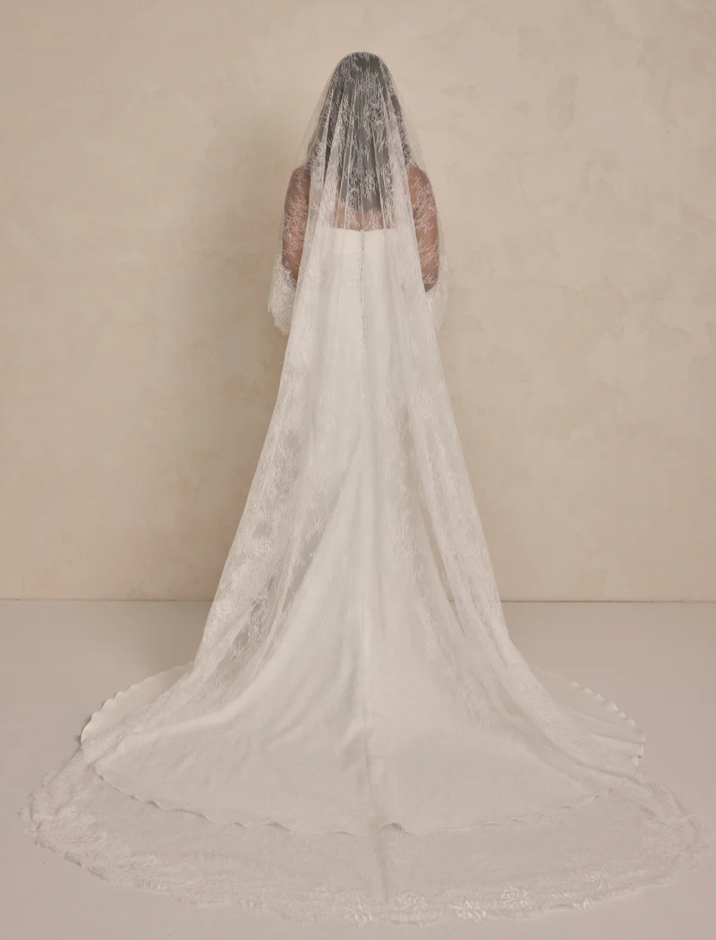 Voile en dentelle de chantilly avec bord en dentelle, longueur 3 mètres.