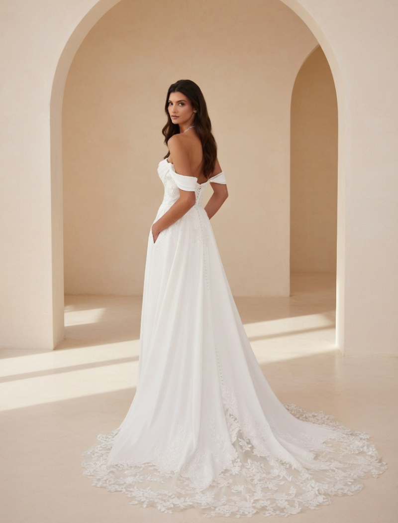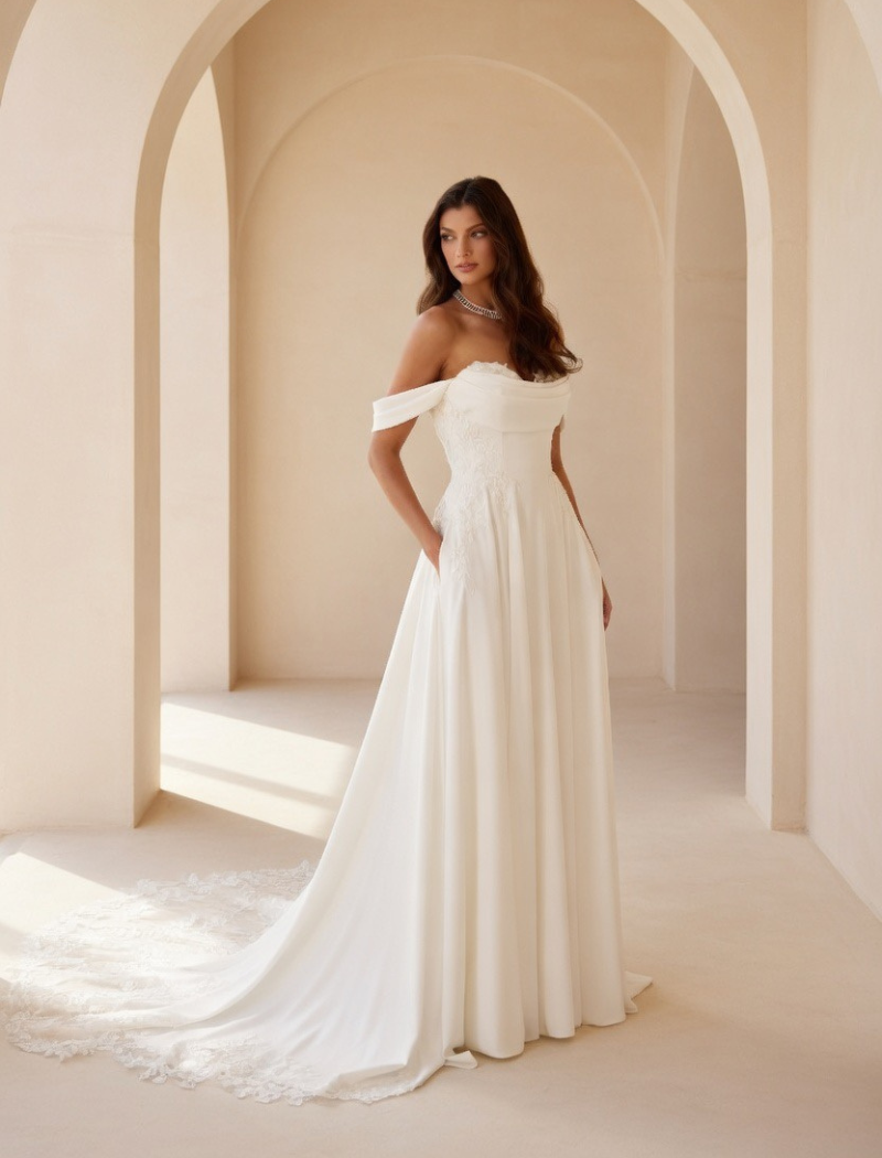 Robe élégante avec décolleté en cœur et détail drapé. Finitions en dentelle pour une touche délicate.