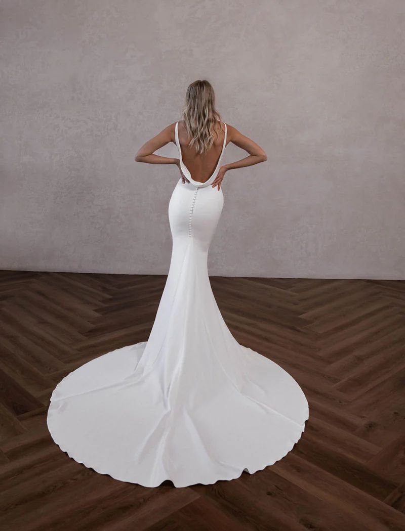 Austin est une robe en crêpe flatteuse. Cette robe élégante et séduisante offre un drapé délicat à la taille et un décolleté bénitier dans le dos, sublimant la silhouette.