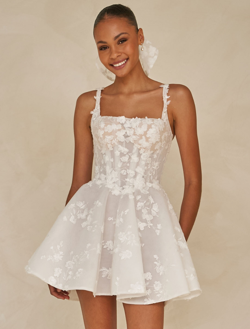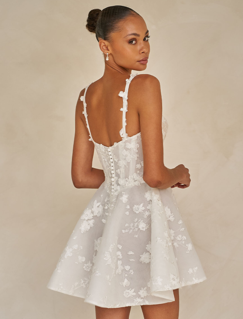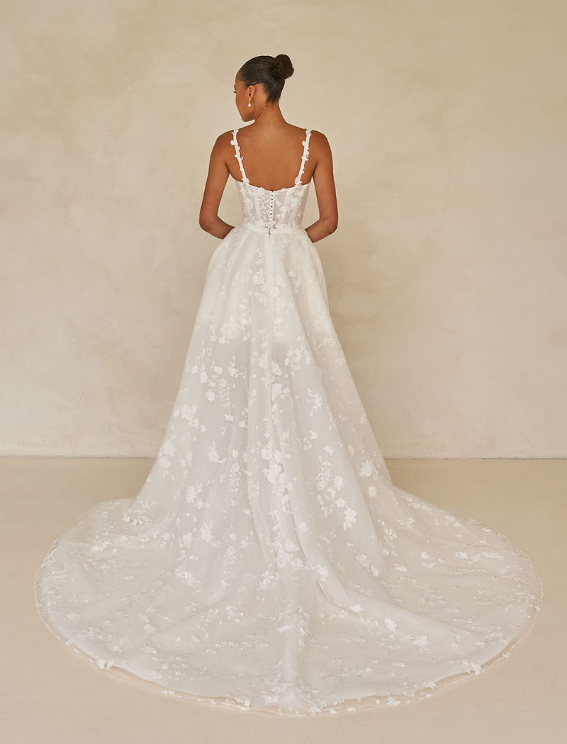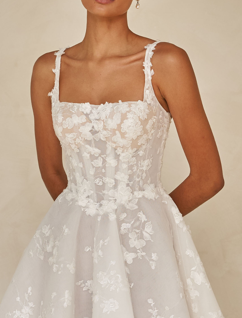 Robe en dentelle, à la fois séduisante et élégante, dotée d’un décolleté carré moderne, d’une taille sculptée et de délicats motifs floraux 3D. Waverly est la robe idéale pour la mariée qui souhaite une tenue modulable.