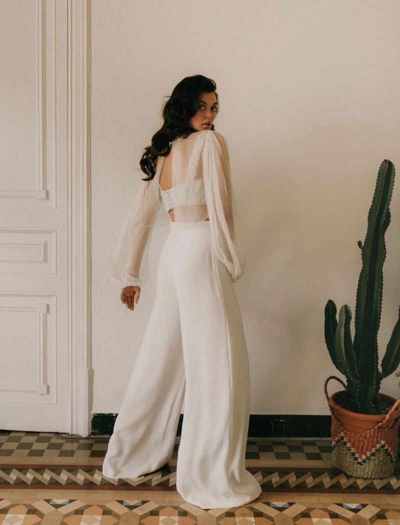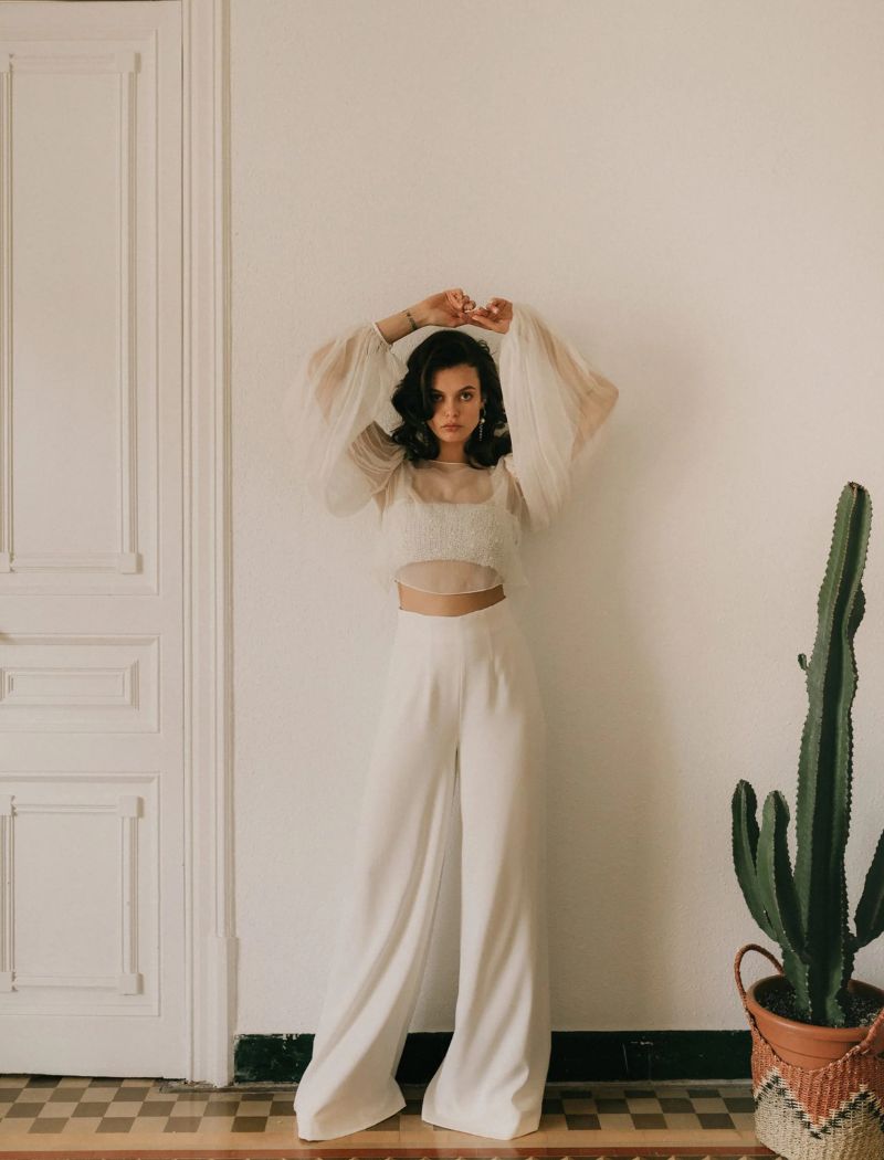 Boléro en mousseline, délicat et léger. Manches froncées et bouffantes pour un mouvement fluide.